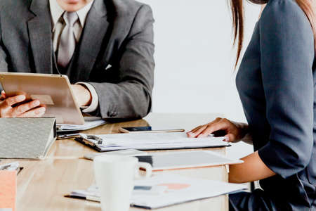 Asian business adviser meeting to analyze and discuss the situation on the financial report in the meeting room.Investment Consultant,Financial Consultant,Financial advisor and accounting concept