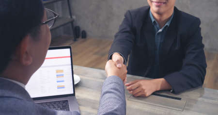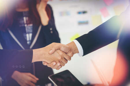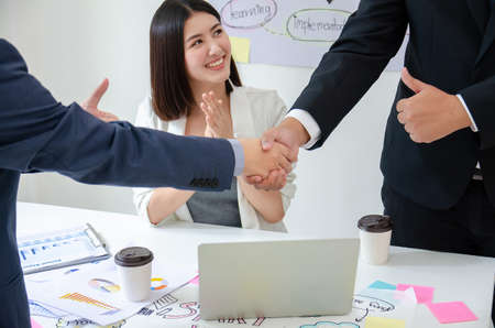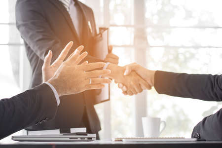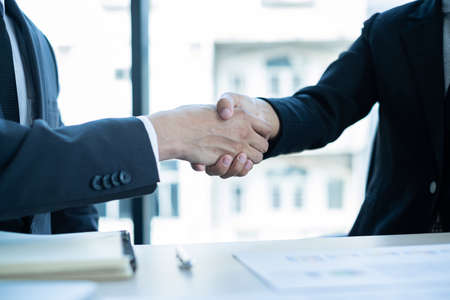 Businessmen making handshake in the office, Congratulation with merger and acquisition concept