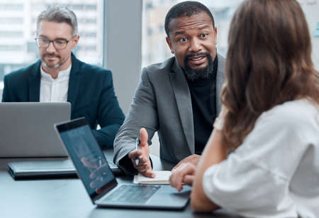Lending his experience. a group of corporate business colleagues having a meeting around the table in the boardroom.