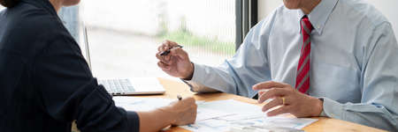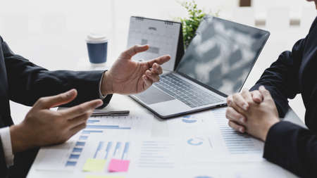 Professional Business partner team discussing on meeting to presentation planning investment project working analyzing and strategy of business making conversation with partner company.