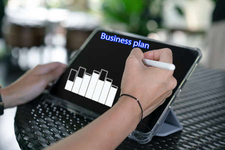Hand use Tablet for online business plan