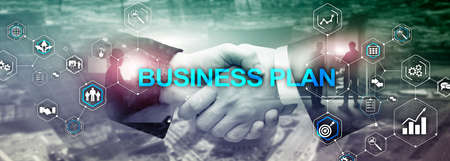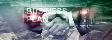 New Business Plan. Analysis and strategy concept. Horizontal Panoramic banner. Handstake