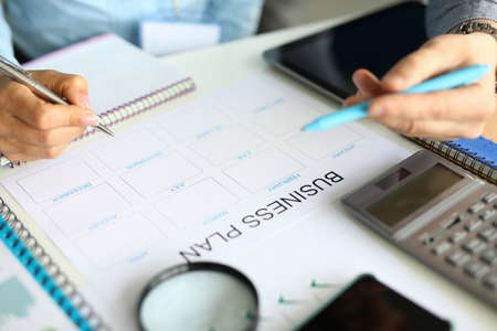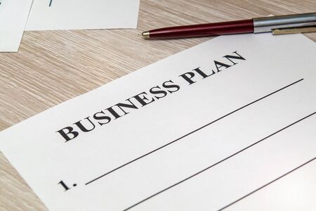 Blank form and pen for drawing up business plan on a table in the office