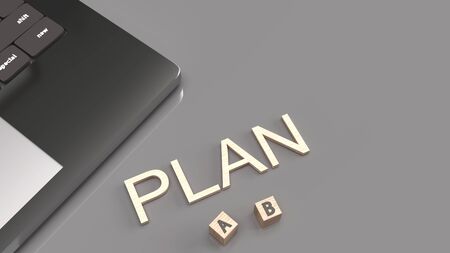 plan word and a b wood cube for symbol choose 3d rendering image.