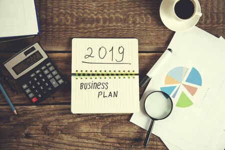 business plan on notepad with calculator
