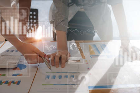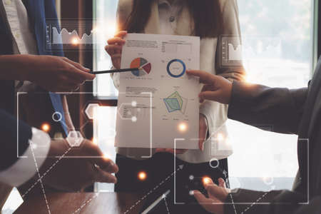 Business people working together discussing plans and discussing financial diagram, Teamwork, Success