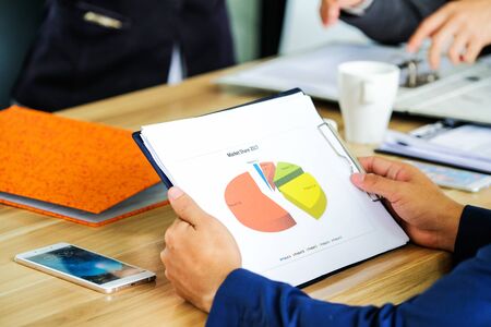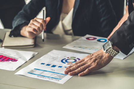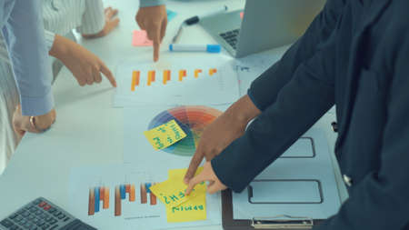 Business people brainstorming analysis chart strategy marketing at table office. Effective people in organization meeting use idea to consult work in company.