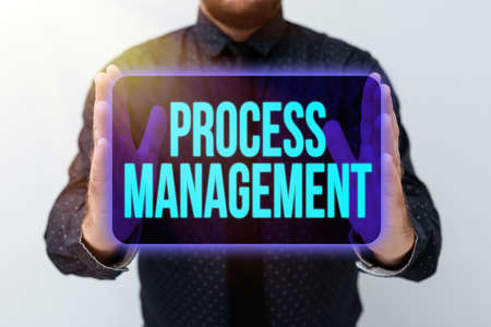 Hand writing sign Process Management. Business overview aligning processes with an organization s is strategic goals Presenting New Plans And Ideas Demonstrating Planning Process