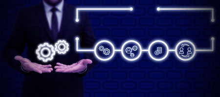 Business process abstract diagram with gears and icons. Workflow and automation technology concept