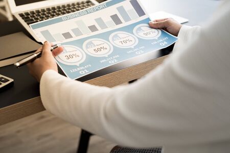 Business man looks at charts and checks numbers - Figures Analysis Company or Stock Growth