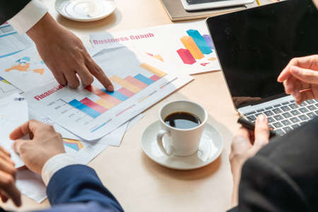 Business people working together discussing plans and discussing financial diagram, Teamwork, Success