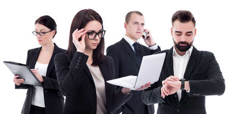 Set of male and female business portraits. Corporate employees of all ages and races showing various face expressions