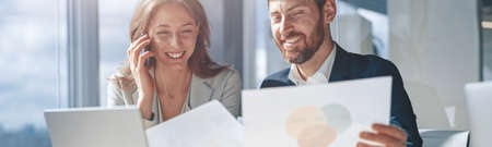 Businessman working in the office. Accountant or bookkeeper working with laptop and smartphone.