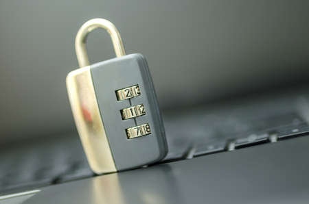 Number Padlock on Black keyboard. Internet security Breach concept