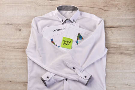 Blank paper notebook and businessman shirt. Concept with copy space for any design.