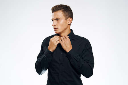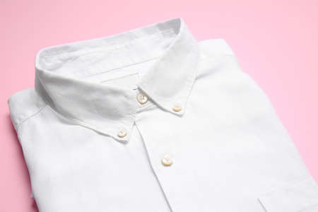 White shirt on the businessman. Unbuttoned collar. Beautiful elegant shirt. Close up view