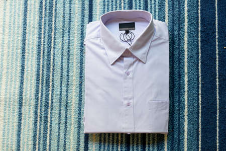 Close up of a purple folded men's shirt. Fashion and shopping concept