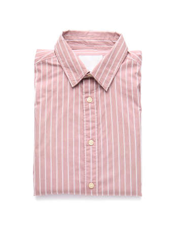 Folded male fashion shirts for adult collection on red background. Copy space for text.