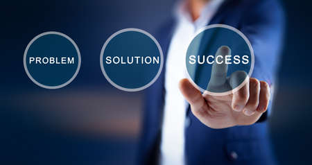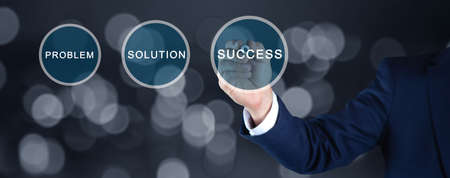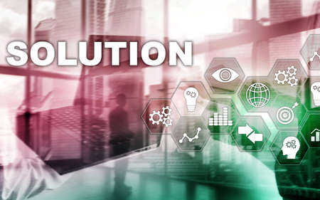 Business solutions, success and strategy concept. Structuring virtual diagram of business process with solutions.