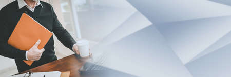 Top view Two businessmen pointed to the material for the meeting, working together to plan to develop and solve common business problems. Business management for growth and quality concept. copy space