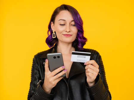 mobile payment stylish woman online shopping