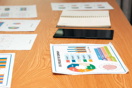 Cropped close up of a table at the corporate office full of business diagrams