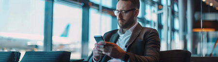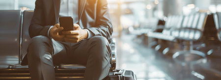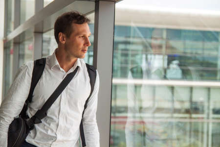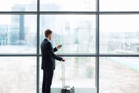 Cropped of rich businessman standing by window in airport