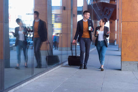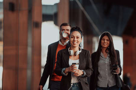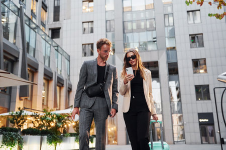 Elegant businesspeople walking in a modern city..