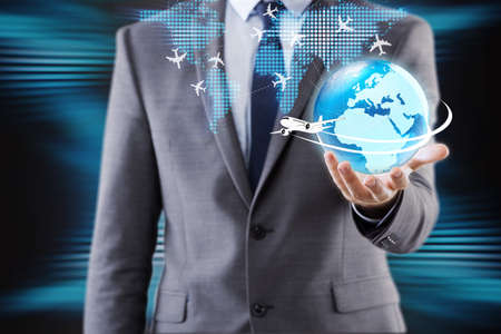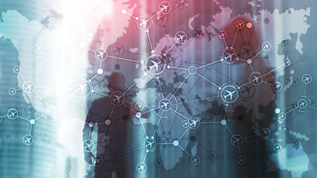 Global Aviation Directions. Air Travel Business background mixed media
