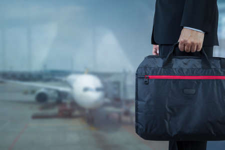 Businessman with briefcase for business trip travel concept