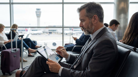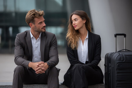 Business professionals hold a meeting before departing for a crucial business trip at the airport
