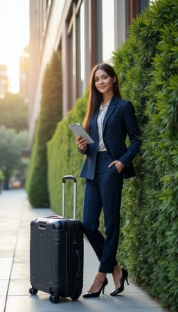 Businesswoman at train station