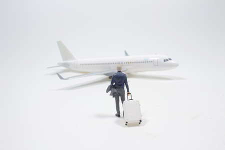 Miniature people : Travellers tourism by airplane. Travel and business concept.