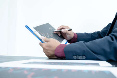 Businessman with a tablet in his hand And touching on the screen That shows a business graph. The concept of starting a new business that goes better.