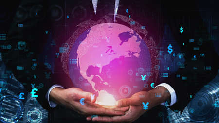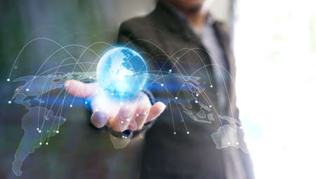 Businessman or investor manage the world of business. using a glowing globe in global investment finance management concept