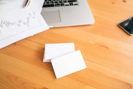 identity design, corporate templates, company style, blank business cards on a wooden background