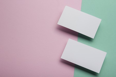 Business cards blank. Mockup on color background. Flat Lay. copy space for text