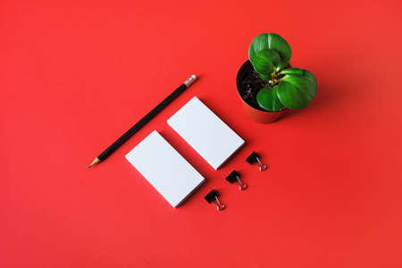 Blank corporate identity. Stationery template on red paper background. Branding mockup.