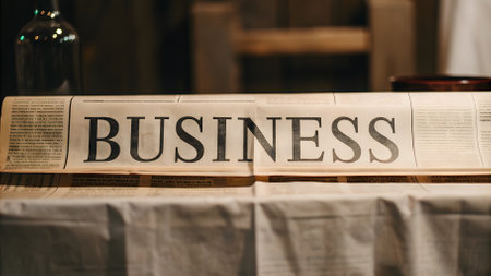Coffee cup and newspaper on table in coffee shop, business concept