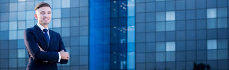 business success. successful man in businesslike suit. manager executive outside the office