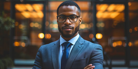 Portrait of a young African American businessman standing in the city