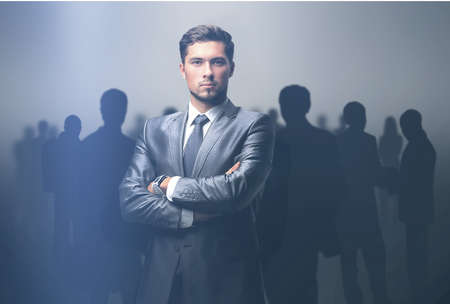 businessman in a suit. gray background
