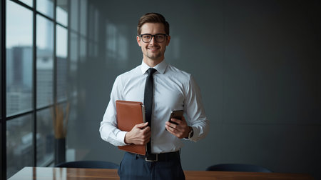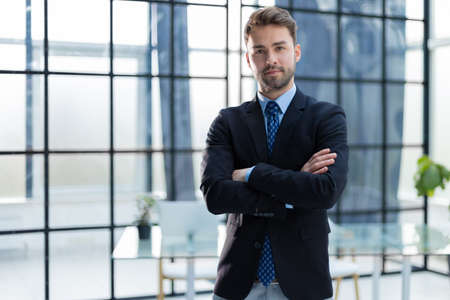 Handsome young businessman standing in modern office