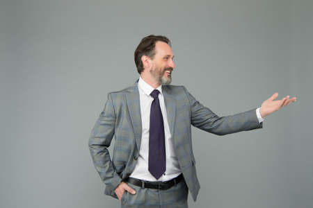Business man in a jacket on a gray background
