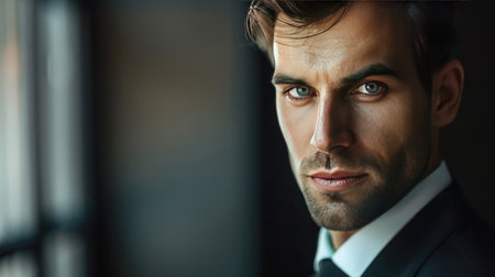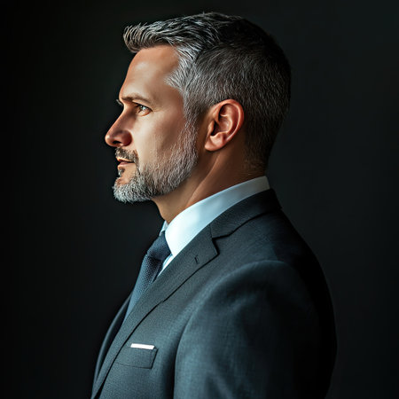 Confident, professional man in a suit, exuding experience and wisdom in a modern setting