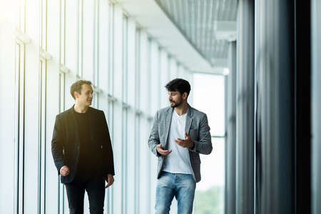 Young businessmen man Talk to a good meeting. Smile to each other