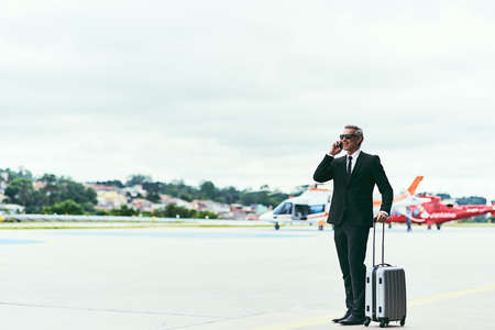 businessman talking on a smartphone from the airport departure h