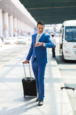 Vietnamese business executive standing outside the airport building