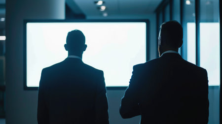 Silhouetted Business Professionals Engage in Strategic Discourse within a Dimly Lit Meeting Room