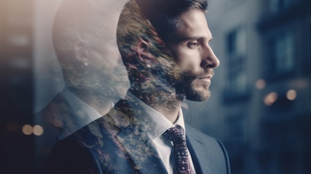 Double exposure concept with business man in modern suit